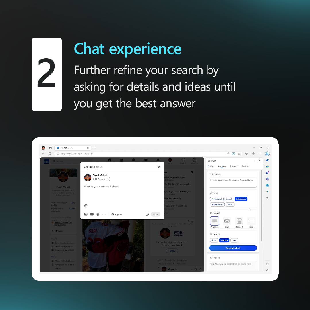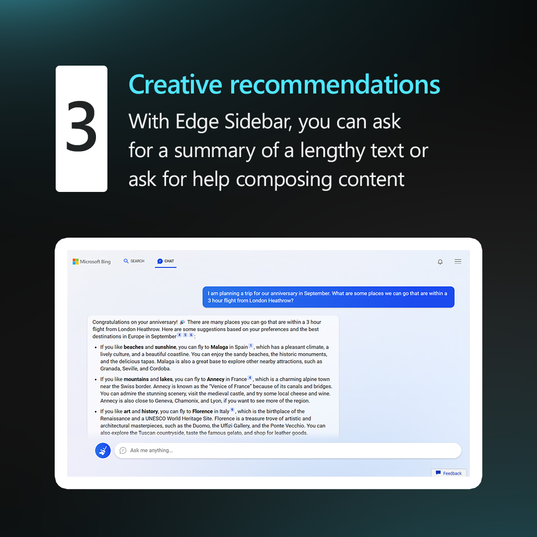 microsoftdeveloper Verified Sometimes you need more than answers—you need inspiration. Powered by Azure OpenAI Service, the new Microsoft Bing and Edge experience will help you get more from search and the web. Link in bio.